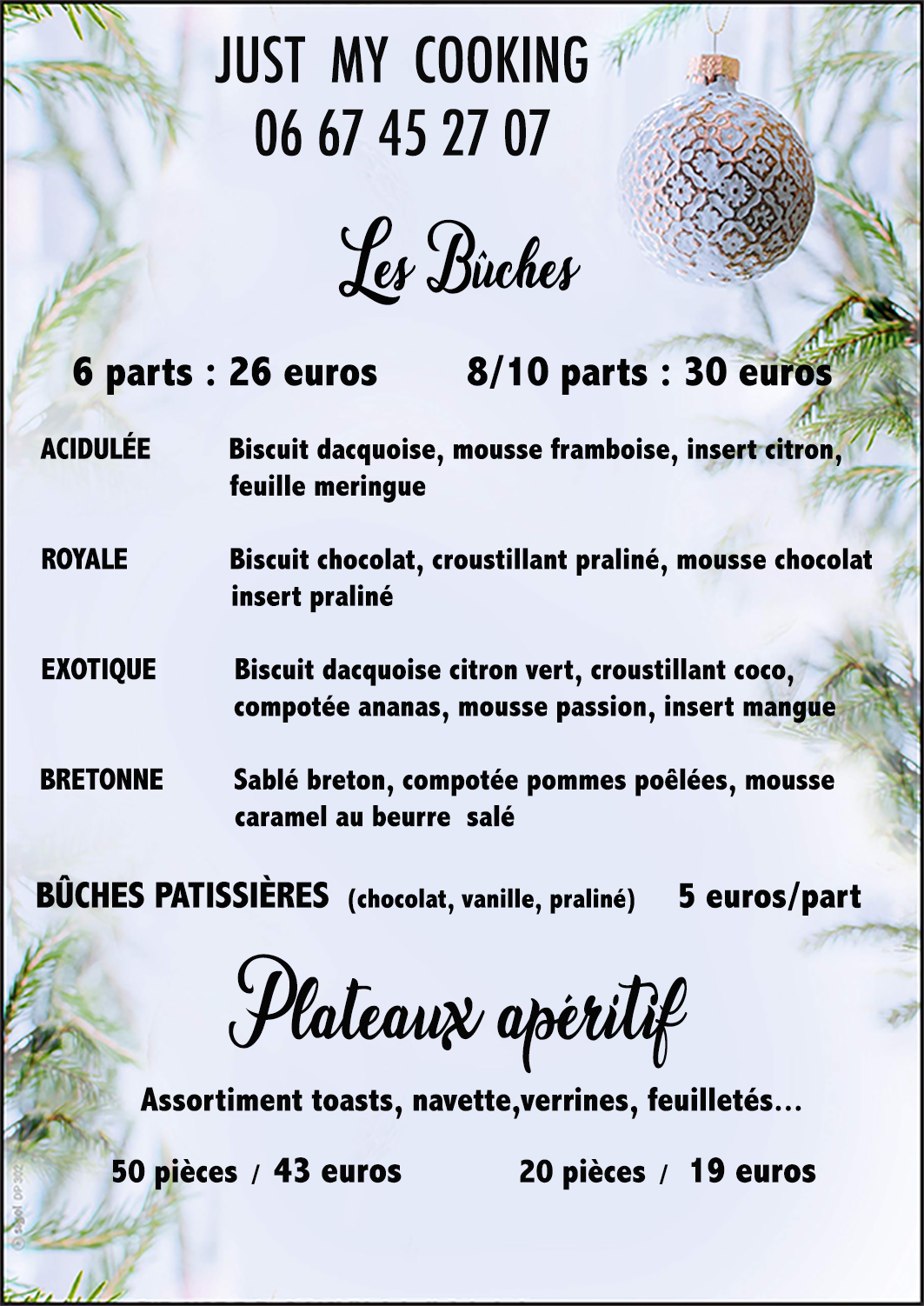 N’hésitez pas à me contacter pour tous renseignements : 06 67 45 27 07 ou par mail : justmycooking@sfr.fr